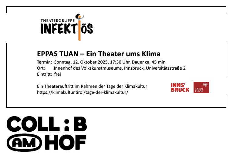 Mit unserer Szene sind wir zusätzlich aufgetreten in der Spitalskirche Innsbruck, im Grätzlmixer Wien, im Paulusheim Reutte und in Schulen.